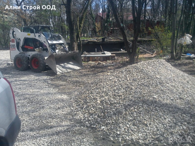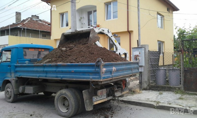 Подравняване и почистване на терени с БОБКАТ, товарене и извозване на земя,