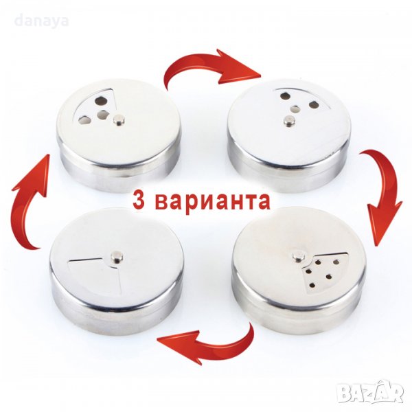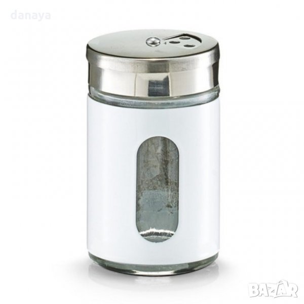 Бурканче за подправки. Солничка или пиперница - вие избирате. Малка стъклена солница, облечена в бял метал. 3 варианта на ръсене.