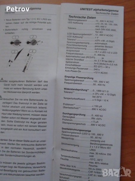 BEHA UNITEST 2000 beta - ТОП Profi Уред, измерващ напрежение, "верига", ред на фазите
