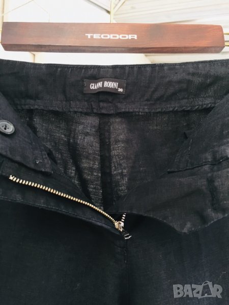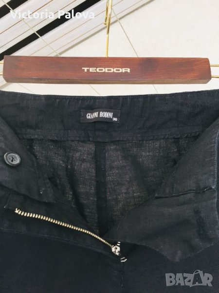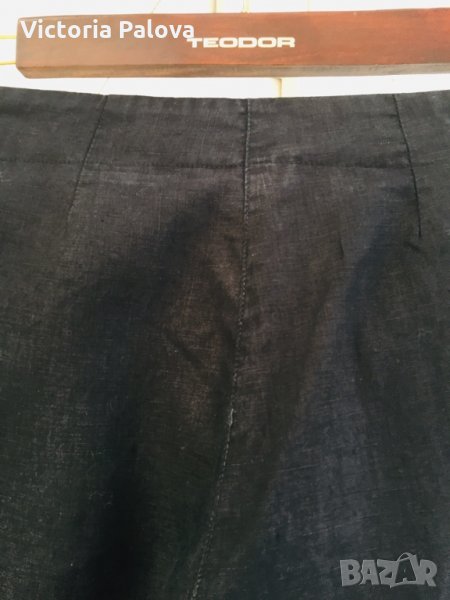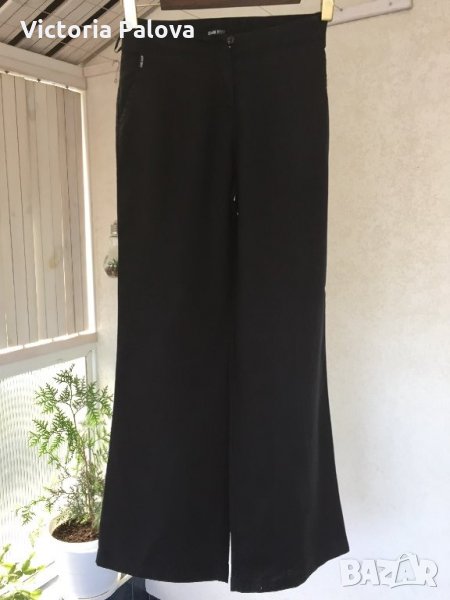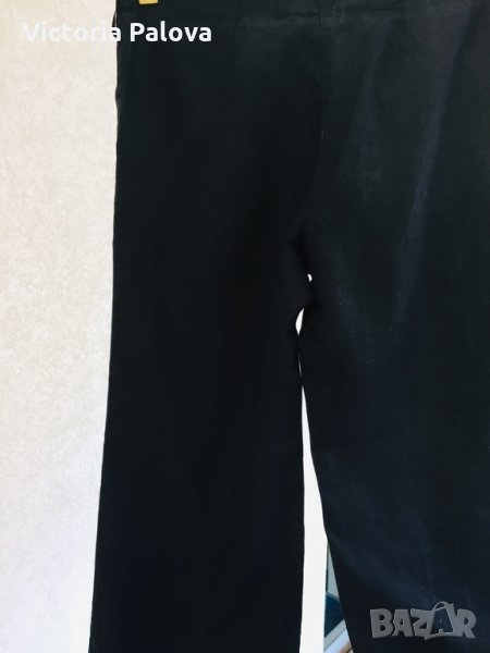Уникална кройка и материя.от тези красиви панталони,които стоят на всяка фигура перфектно(на снимките се вижда как е ушит панталона на кръста отзад). Коланът едностранно - 38-39см, дължината на крачола от колана - 102см , отвътре - 81см. Широчината на крачола горе - 30см, долу - 28см.