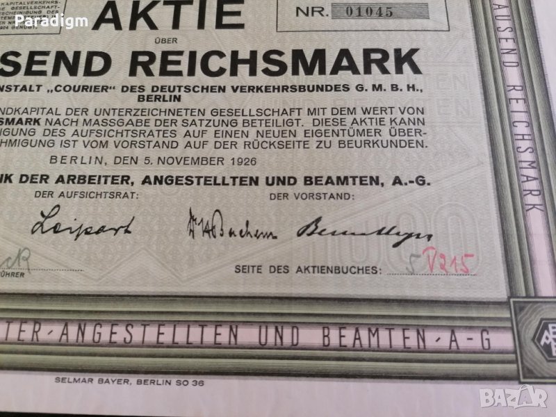 Акция от 1926г.