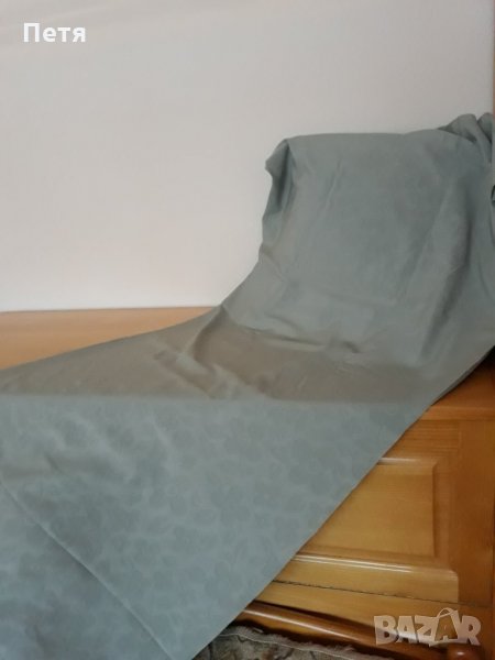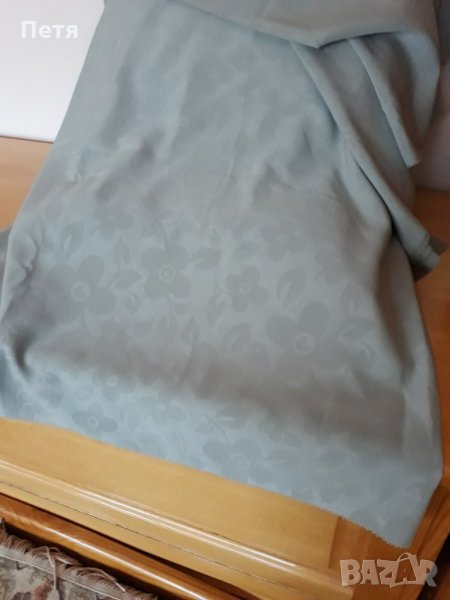 Копринен плат , плътен , много приятен на допир , нежен зеленикав цвят с ефект на цветя . Дължина - 2,80 м , ширина - 1,50 м .