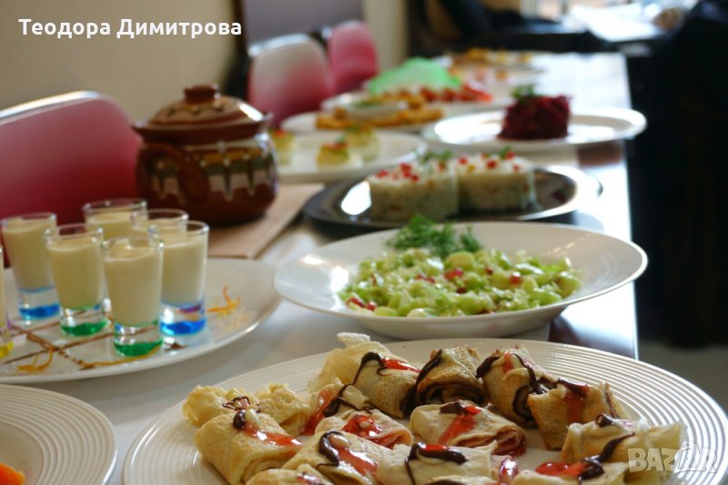 хайвер, Гювечета, Щрудел с ябълки и канела, Воловани, Бушета, Свежа салата в