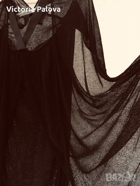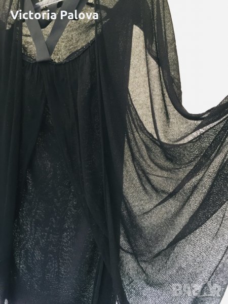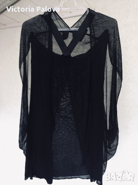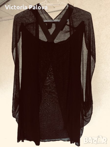 Супер-мега блуза,многослойна,красива и не е обикновена.цялата уж мрежеста и прозрачна,но в същото време не е,заради многослойността.наметалцата по раменете могат да се слагат в различни вариации,всяка от тях е красива.материята е котешка,мека и приятна.