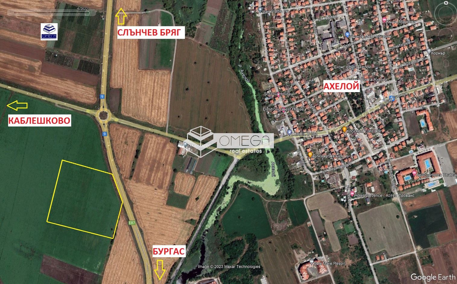 Урегулиран поземлен имот с лице на главен път 150м Бургас - к.к.Слънчев бряг и с обща площ от 63 дка. В близост до имота има всички необходими комуникации, които гарантират функционалността и удобството на бъдещите проекти.
