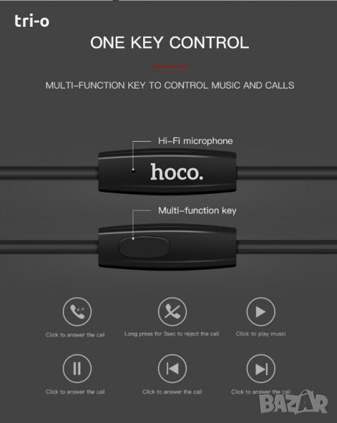 HOCO метални високо HD качество, супер бас стерео кабелни слушалки с микрофон. Жични със стандартен 3.5mm жак. Подходящи за мобилен телефон, компютри, mp3/mp4 player, iPod и други устройства с такава букса.