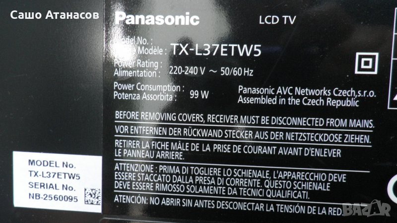Panasonic TX-L37ETW5 с повредена матрица ,TNPA5583 1P ,TNPH0993 3A ,6870C-0402C ,TNPA5587 1FR