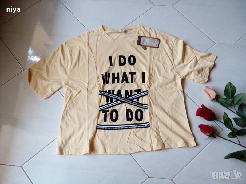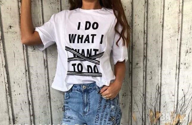 Тениска със ленти и надпис I do what I want to do В наличност в бял цвят - размери - С :жълт цвят- размери - Л