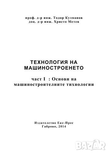 3.PDF Технология на машиностроенето. Ч. 1, Основи на машиностроителните технологии- 7.20 €/ 14.08 лв.