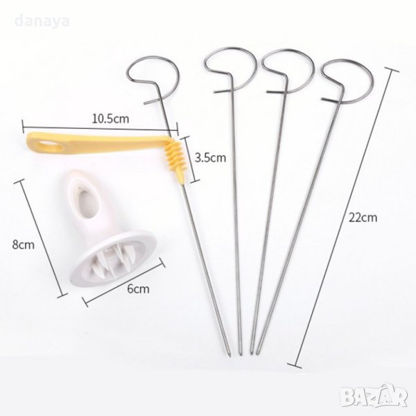 Комплектът включва 4 шиша за пържене или печене на картофени спирали.