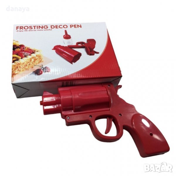 пистолет за декориране на сандвичи и ястия. Атрактивен диспенсър за сосове, идеален за партита и детски празненства. Както децата, така и възрастните ще се забавляват със слагането на кетчуп, майонеза, горчица и др. на хамбургерите, хот дога или картофките. Лесен за използване - извадете дозатора от пистолета, напълнете с любимия сос и използвайте!