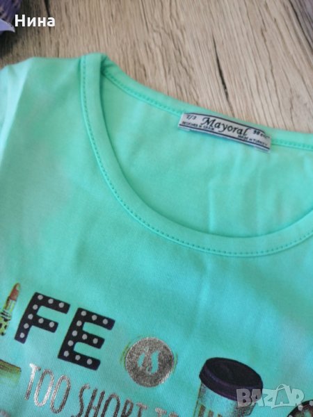 Тениска в прекрасен, летен цвят. Налични размери: 92 см, 98 см, 104 см, 110 см, 116 см, 128 см и 140 см. За още моделчета разгледайте и останалите обяви в профила ми.