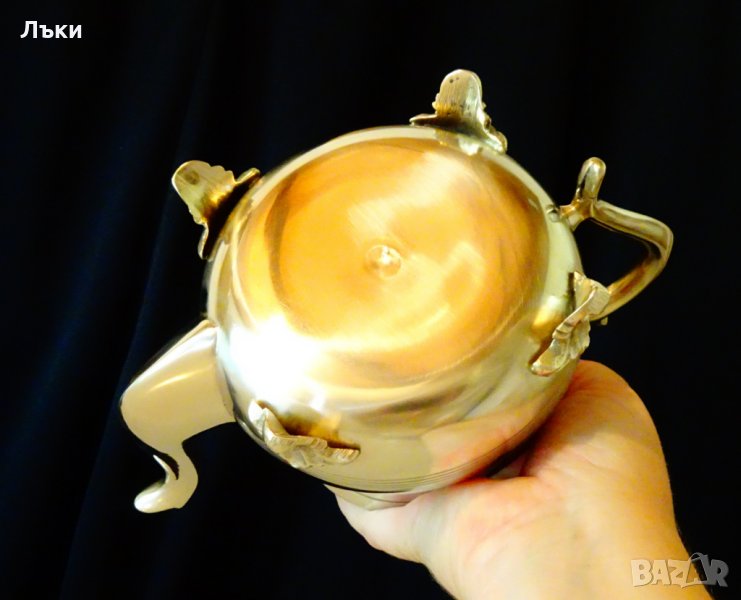 блясък.Има 4 стабилни релефно отляти крачета.Височина 13 см.,дължина 23 см.,диаметър