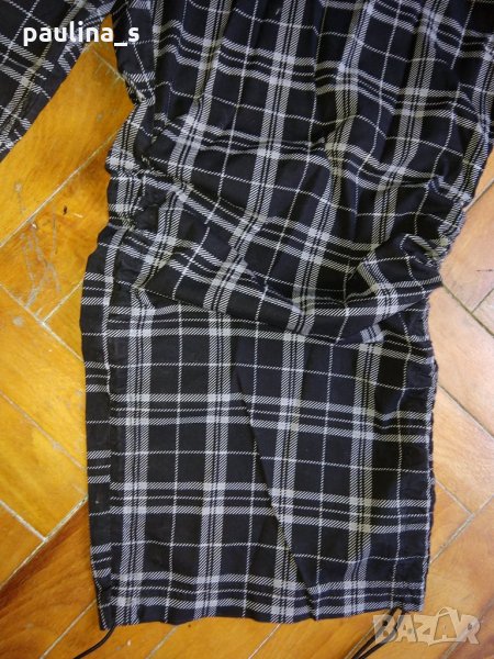 Еластични бермуди с набиращи се крачоли. Гайките са издължени за носене и колан за ханш. Материята е еластична, но тънка и прохладна, покрива няколко размера. Голяма "гъзрийка".