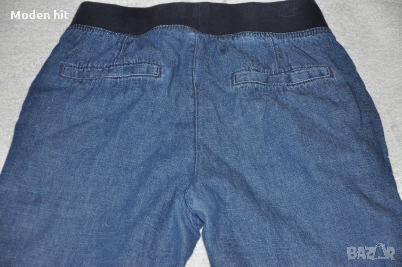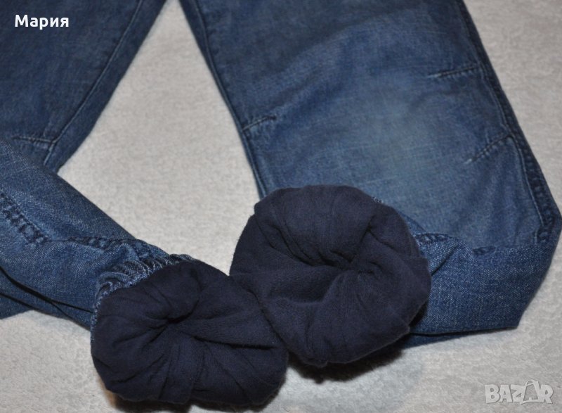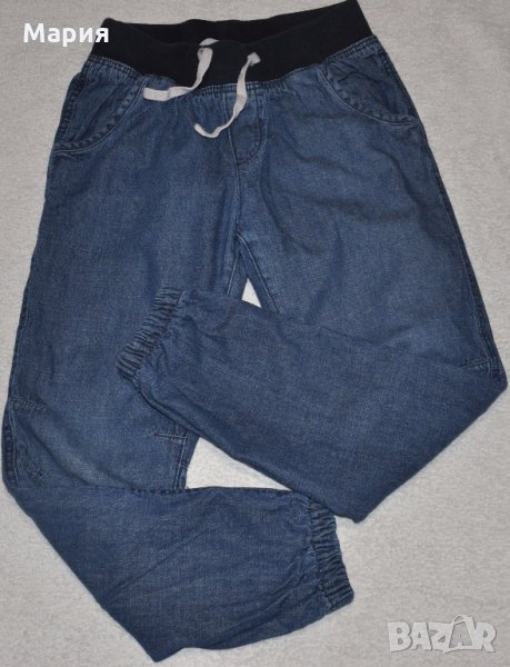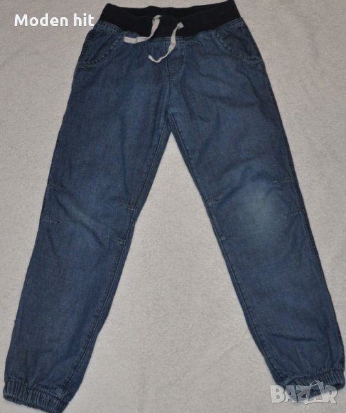 1. Цена 6 евро. Дънки с памучна подлата H&M. С ластик и връзки на кръста. По етикет са размер 128 см. 100% памук. Отлични. Дължина 78 см., от чатала 59 см.; талия /ластична/ от 29 до 38,5 см.; ханш 41,5 см.