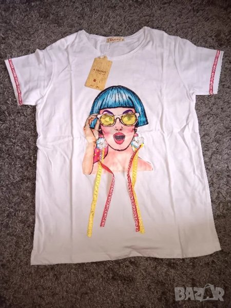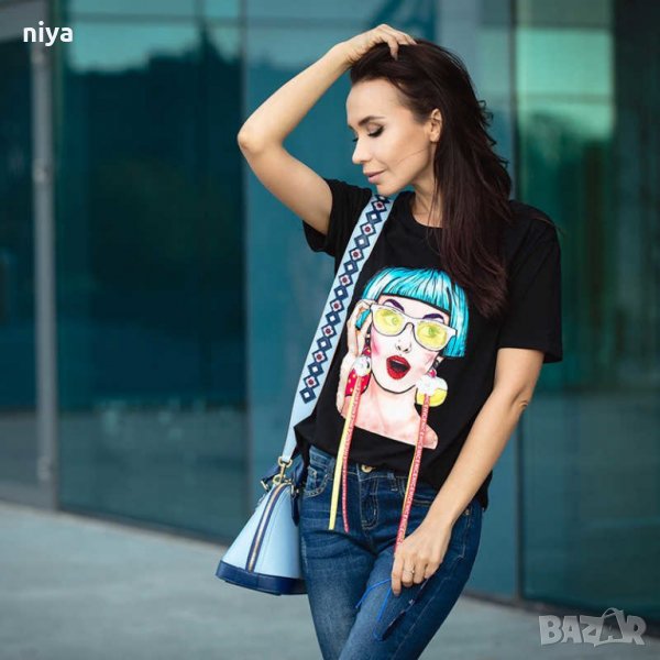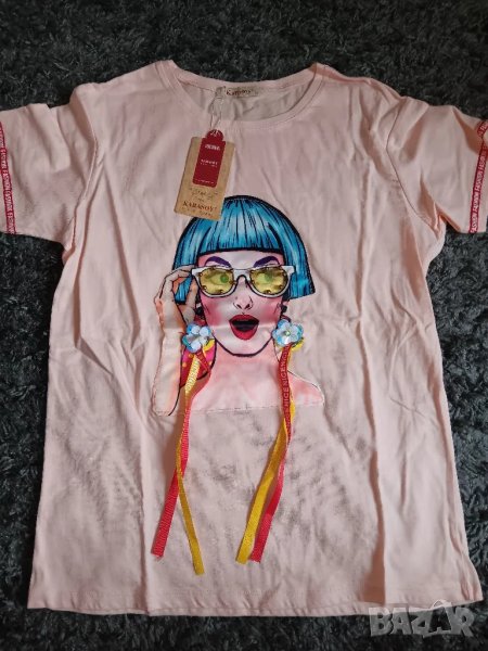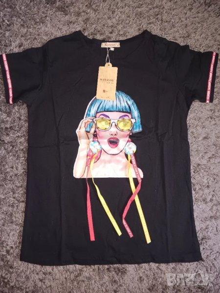 Тениска със капси и ленти в черен,червен,бял,жълт и бледо розов цвят → Обява 25667262