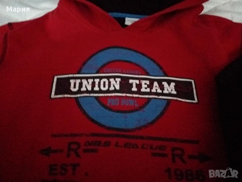 4. Цена 4 евро. Червен суичър с щампа. С лека вата. Отличен, без следи от употреба.