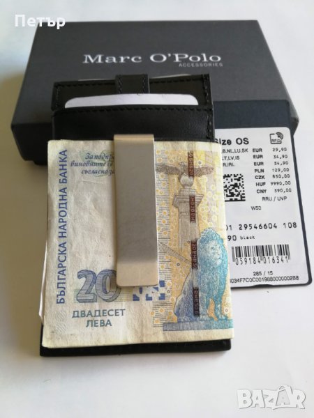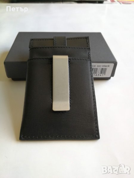 - 1 метална щипка за банкноти отзад на портфейла, която може да се сваля и носи отделно. Надпис на фирмата отпред.