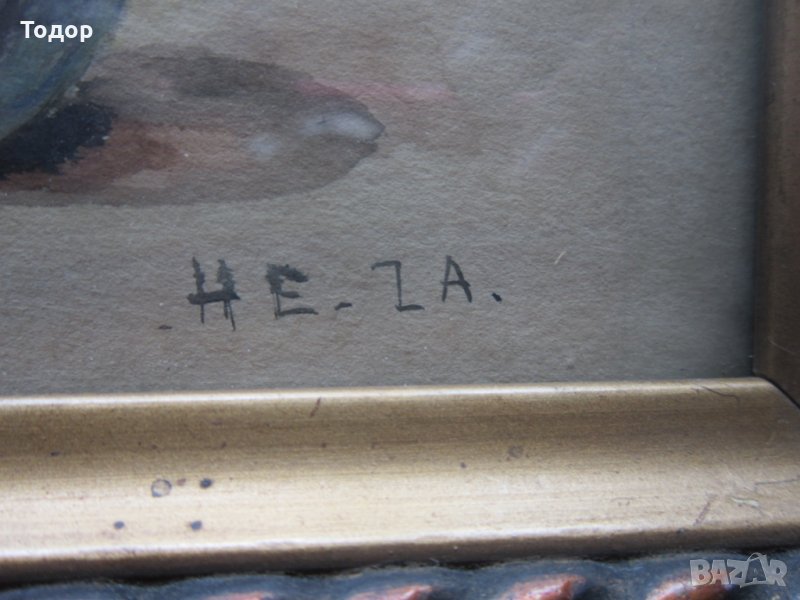 В комплекта се включва рамка от масивна дървесина стъкло и паспарту Отлично състояние