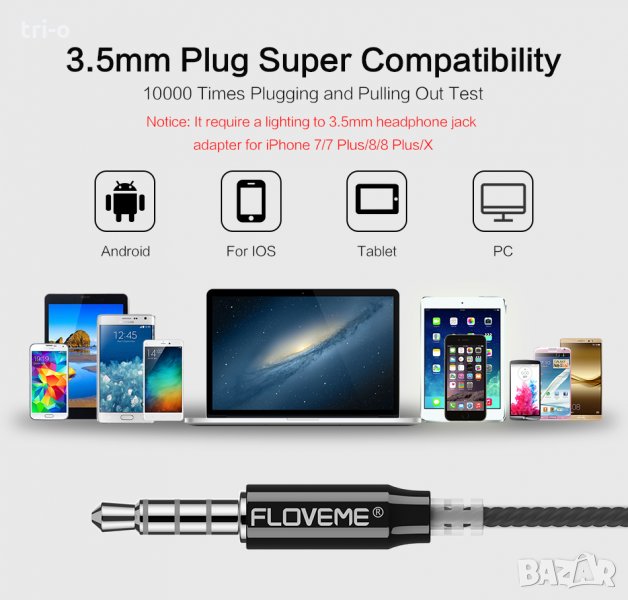 FLOVEME HIFI Спортни кабелни стерео бас слушалки с микрофон. Жични със стандартен 3.5mm жак. Подходящи за мобилен телефон, компютри, mp3/mp4 player, iPod и други устройства с такава букса.