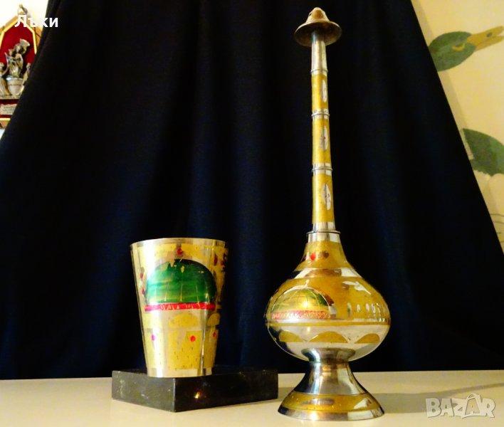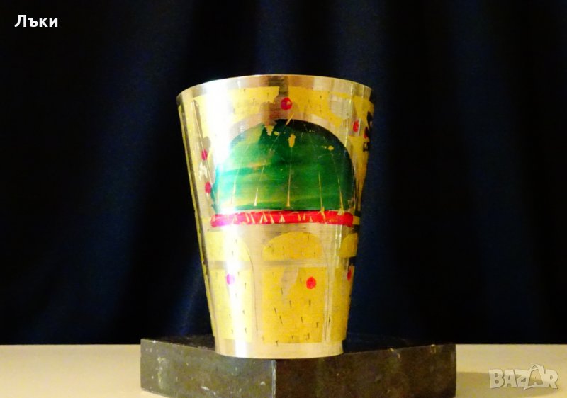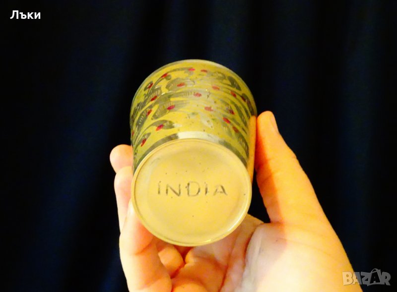флорални мотиви и посребряване.Маркирана Индия.Височина 8 см.,диаметър 6.5 см.,тегло 100 гр.Вместимост 150 мл.