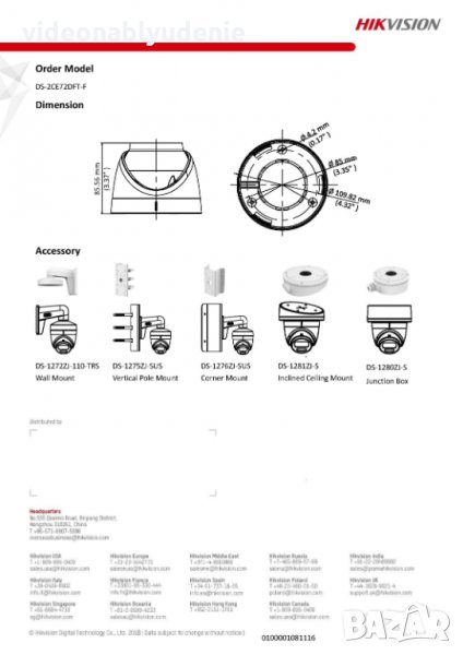 OSD меню за настройки: ДА. Hikvision Coaxitron протокол.
