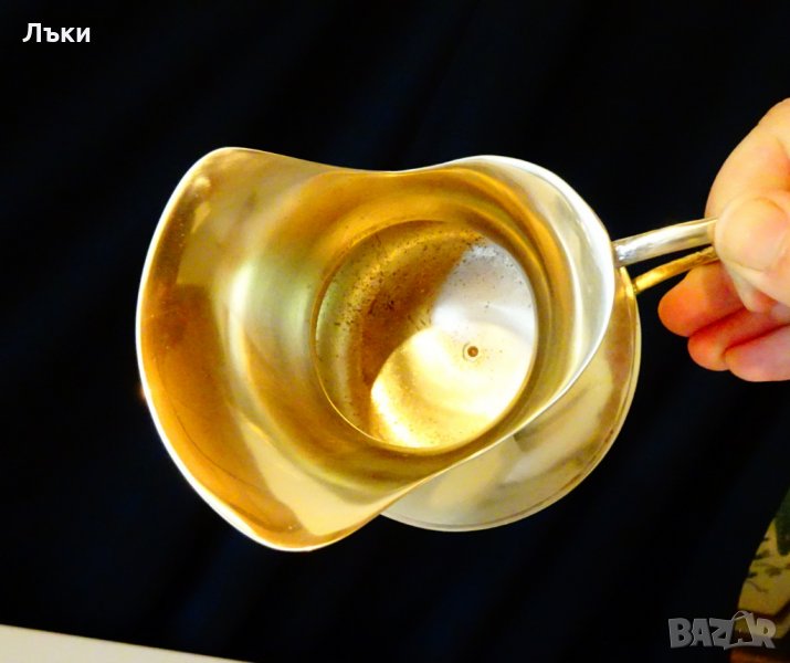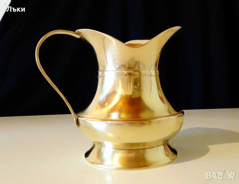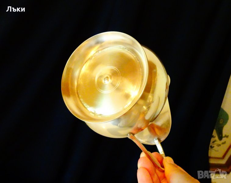 масивен бронз със златен блясък.Височина 14 см.,дължина 15 см.,диаметър 12 см.,тегло 370 гр.Вместимост 800 мл.
