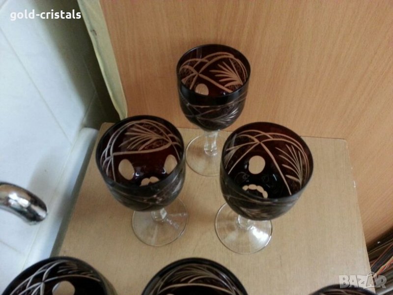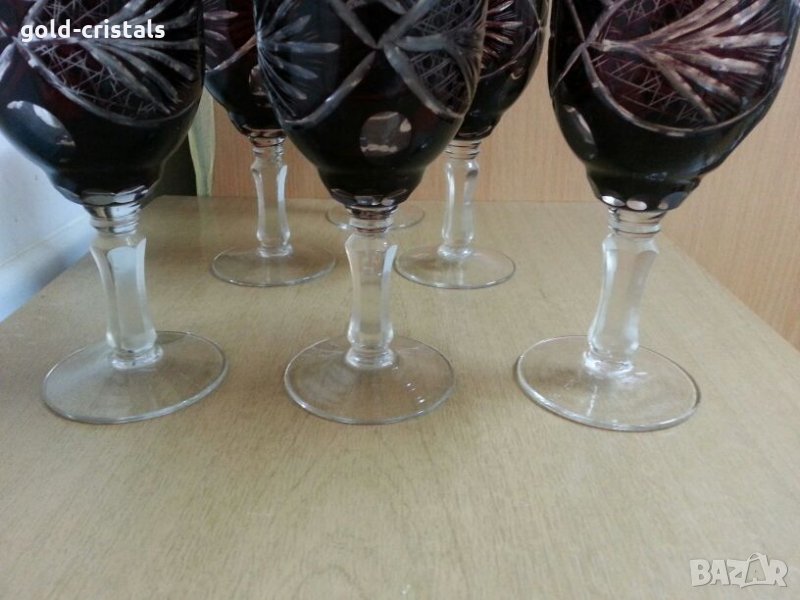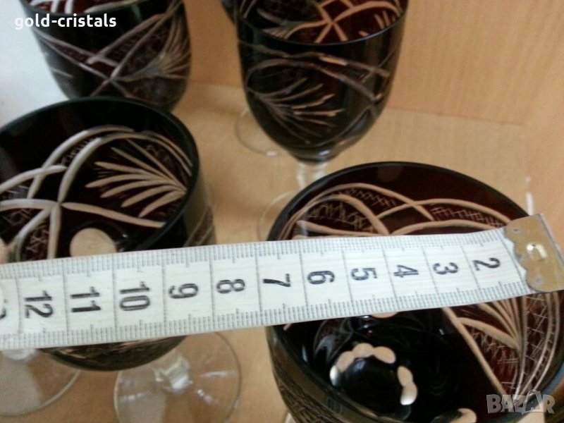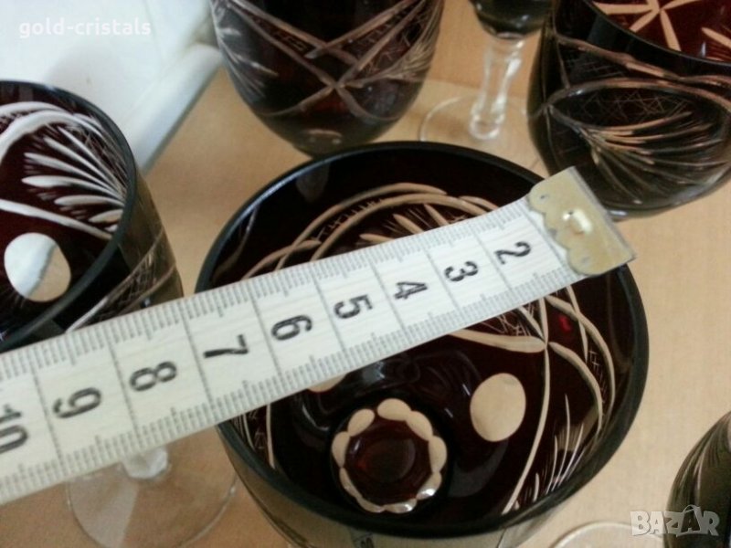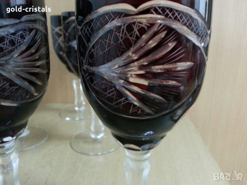 За вино вис-16см 6бр-590лв за ракия вис-12см 6бр-450лв за коняк 6бр-450лв сервиз кристални чаши цветен червен кристал ръчно гравирани руски кристал съветски ссср комплект сет лот кристално стъкло цветно стъкло чаши на столче ретро арт декор винтидж колекция стари антикварни предмети обзавеждане за дома и семейството подходящи за подарък за ценители и колекционери