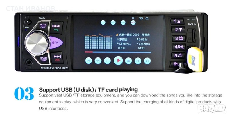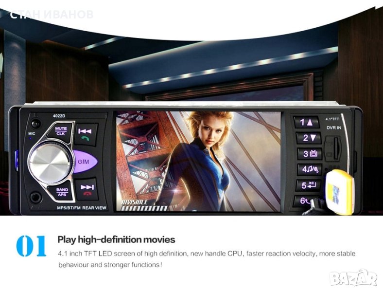 4.1’’инча HD 1080P Stereo FМ Player + Bluetooth.