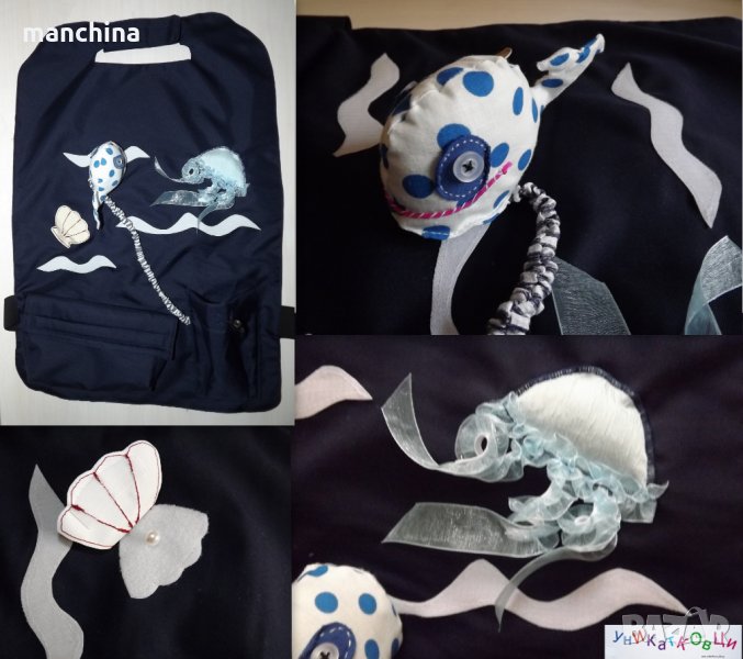 Органайзер "МоРе" се изработва в единични бройки от серията "Уникатковци"Идеално забавление за бебето в колата и възможност за организиране на пътуването.Термо-джоб за шише и голям джоб,който е подвижен и може да се ползва като чантичка за най-необходимото.Поставя се на гърба на предните седалки и по този начин предпазва седалката от немирните детски крачета