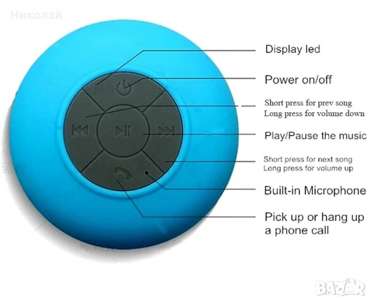 вендуза за прикрепяне към стъкло , плочки и други гладки повърхности. Подходяща е за море , басеин и баня. ( водоустоичива е на пръски , да не се потапя във вани , басейни и др. ) Можете да слушате музика докато сте в банята и да отговаряте на обаждания от тонколоната