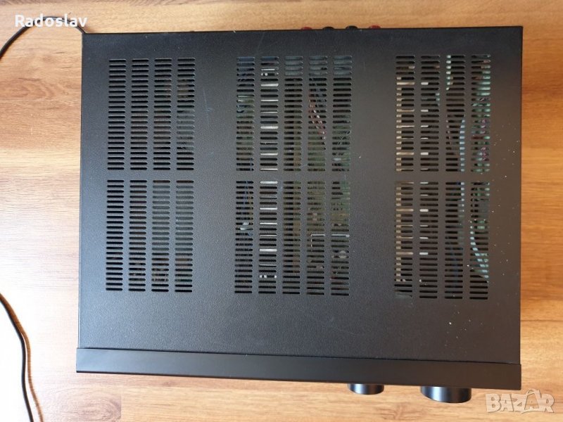 За ремонт не излиза сигнал на изходните клемите на усилвателя. Без липси и интервенция по него. Липсва едно пласмасово капаче. на снимката се вижда. Държа на коректността.