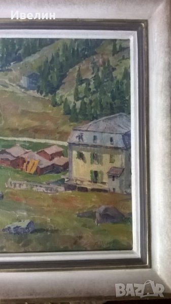 стара картина-пейзаж.масло на платно,подписана,датирана в рамка с размери 49см/58см,вътрешни 32см/45см.