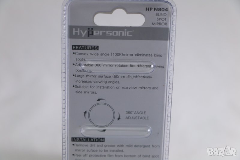 комплект от 2бр. авто широкоъгълни огледала за мъртва зона, Hypersonic, нови. Елиминира всякакви мъртви зони на видимост. Върти се на 360 градуса, което позволява регулиране на зоната на виждане. Диаметър 50 мм, позволява монтаж върху страничните огледала на автомобила. Тегло 40 гр.