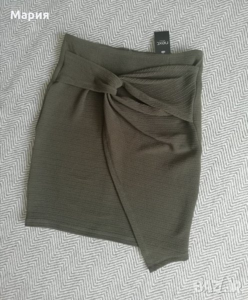 Next дамска пола с възел, цвят каки, нова с етикет, размер М, материя: релефно еластично трико