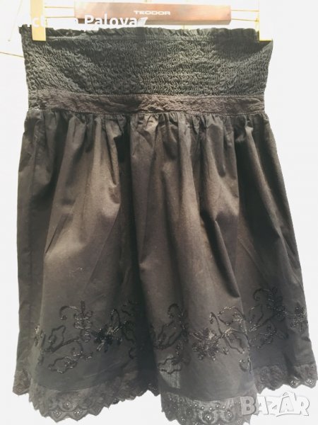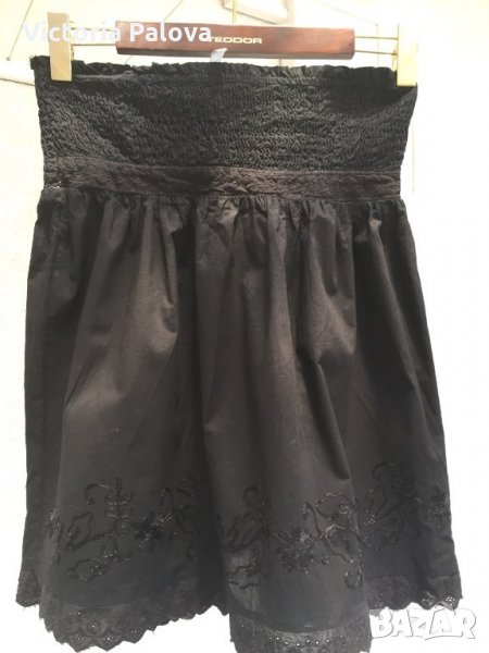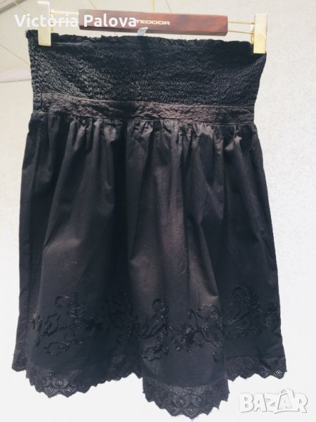 Много красива,удобна,с модерна дантела ришелие,лека,дишаща,ластичен колан. талията е 37 см в неразтегнат вид-коланът е изцяло ластичен,разтяга се.ханшът е също неизмерим,защото има много плохи-то ест е без определен размер.дължината е 55см.
