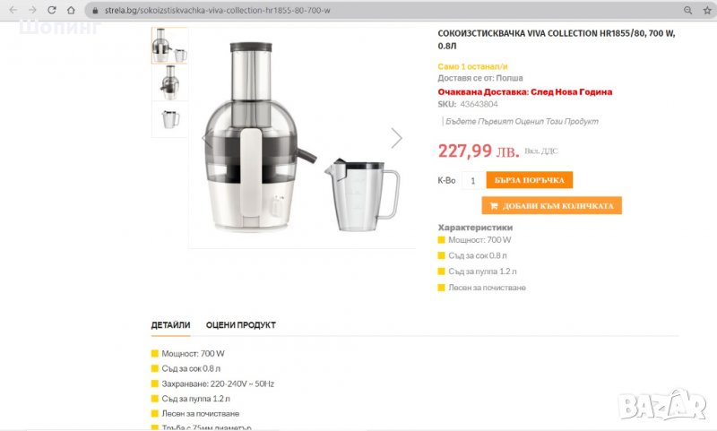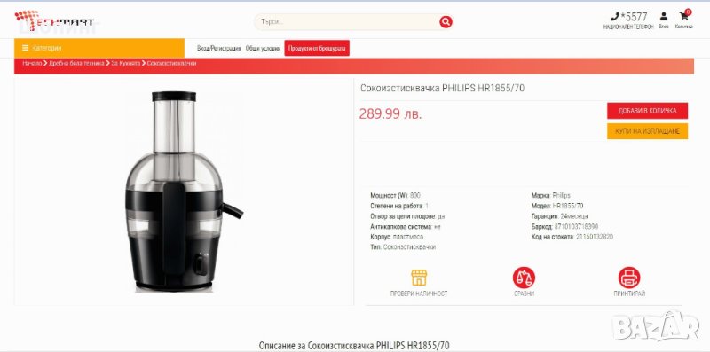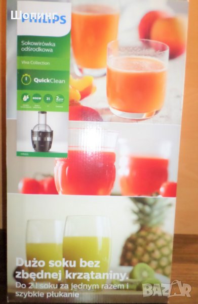 НОВО! Центрофугираща сокоизтисквачка Philips. Максимално количество с минимум усилия! Материал - Инокс. 800 W! На пазара са предимно 500 W.