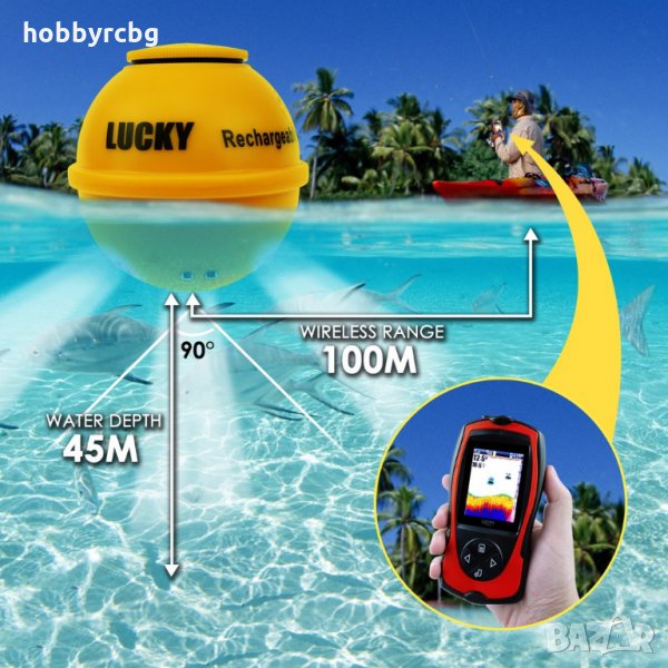 Безжичен сонар Lucky с презареждаеми батерии и цветен дисплей