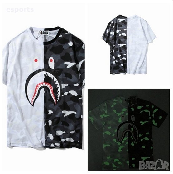 Полу бяла полу черна тениска BAPE A Bathing Ape - светеща в тъмното