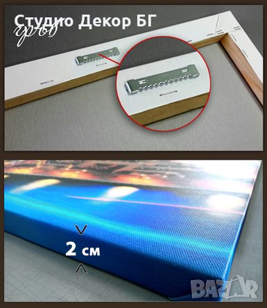 Картината е изработена от подрамка от естествено дърво и изпънато на нея отпечатано платно.