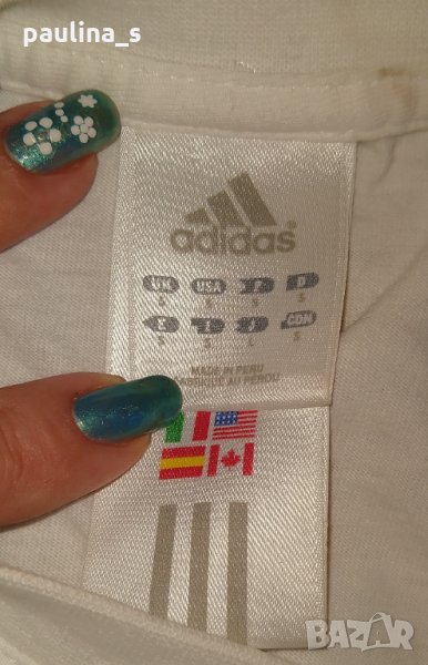 1️⃣. Колаж / S / XL - "Adidas". Цената е крайна 19,99лв / 10 евро. Еластичен брандов потник, оригинален. Материята е памук и ликра. Деколтето е шпиц, ръкавите са с нормална извивка. Артикулът има идентификационен номер, удостоверяващ автентичността на бранда.