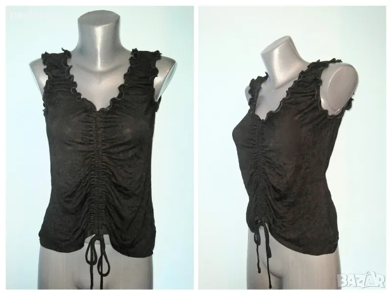 3️⃣. Колаж / L / 3XL - "MSSR". Цената е крайна 14,99лв / 6,5 евро. Еластичен потник с къдри, тип бюстие и набиращата се предница. Материята е вискоза и ликра - много еластична покрива няколко номера. Дължината отпред се регулира с шнурове. Като нов.