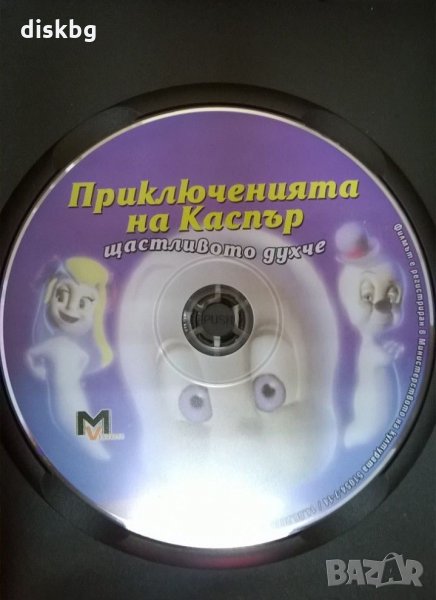 Детски анимационен филм на DVD "Приключенията на Каспър щастливото духче" в DVD кутия. Формат: 4:3. Цветен. Дублиран на български език. Времетраене: 56 мин. Изпращам по куриер с опция преглед и тест. Лично предаване от нашия магазин "PCtop.BG", намиращ се в гр. София, Студентски град, ул. Университетски парк № 7. Подробности за местоположение, работно време и други наши артикули на "DiskBG.com".