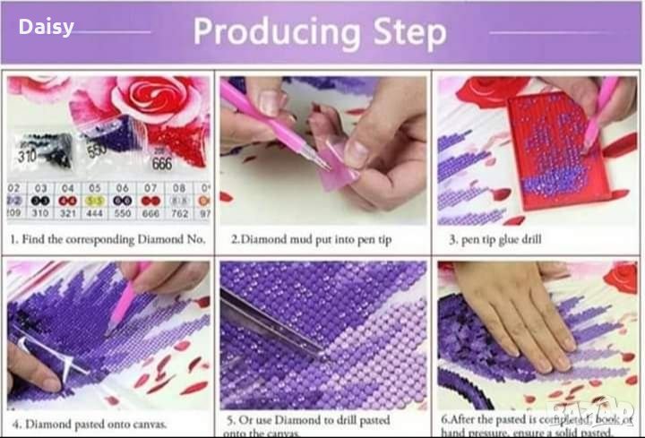 🔸Комплектът съдържа : платно (основа ), ваничка , писалка и малко сухо лепило, елмази.