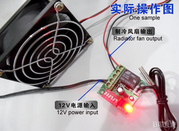 За охлаждане: моля свържете охладителя или вентилатора към +C- (note positive and negative pole)