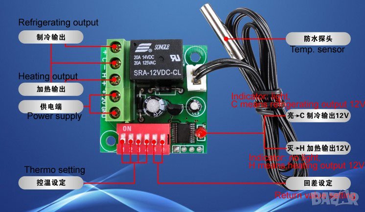 Високоточнен цифров термостат за прецизен температурен контрол! С големия си LCD дисплей и възможност за управление на отопление и охлаждане, този модул е идеален за инкубатори, аквариуми, климатични системи и домашни приложения.