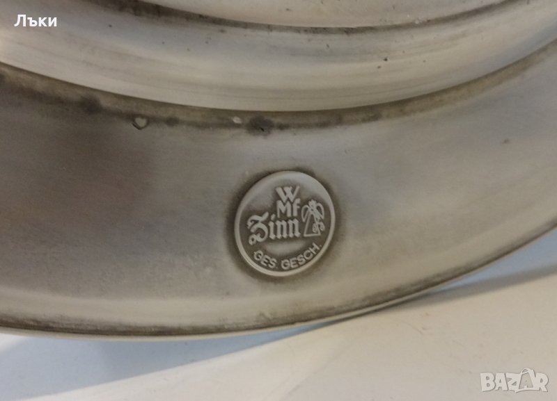 95% калай и 5% сребро.Маркирана с инициалите на Западно Германската марка WMF,като патентован модел.Чинията