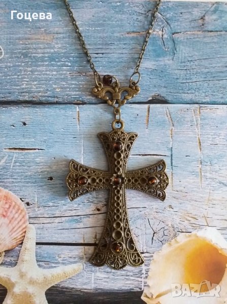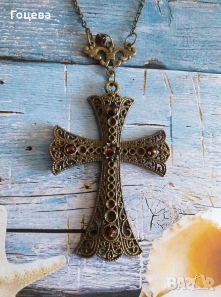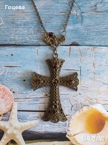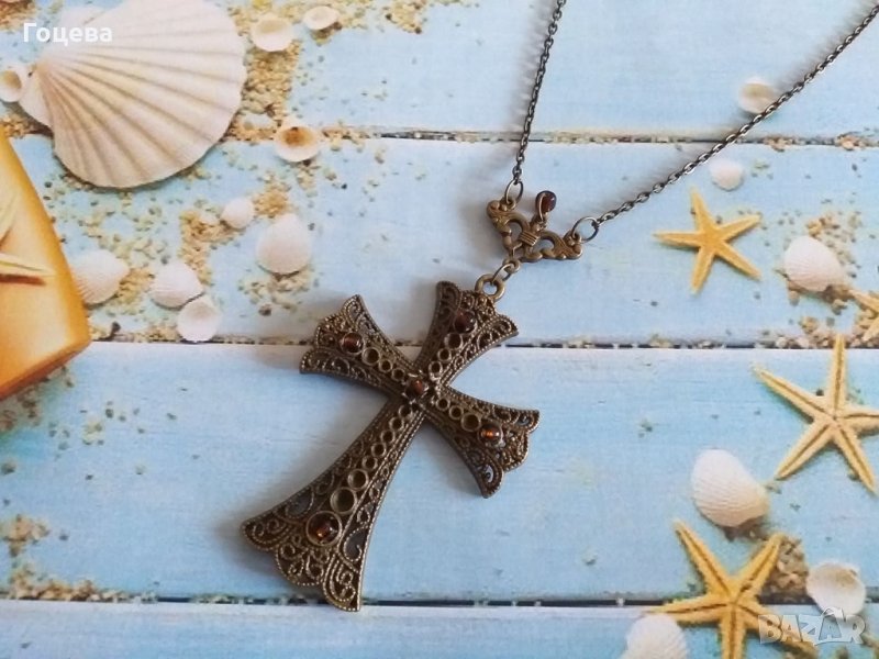 Много красиво и изящно колие с кръст в цвят Античен бронз. → Обява 25846652