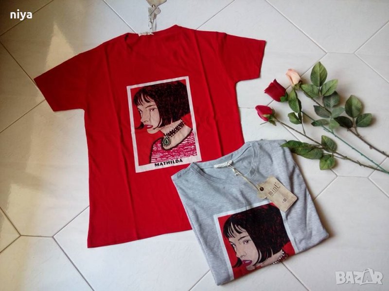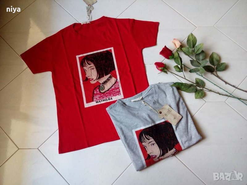Тениска Mathilda със камъни на колието в сив цвят → Обява 25847089