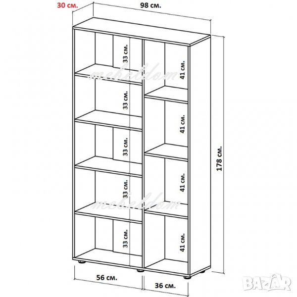 размери: 98 / 30 / височина 178см. (виж схемата)